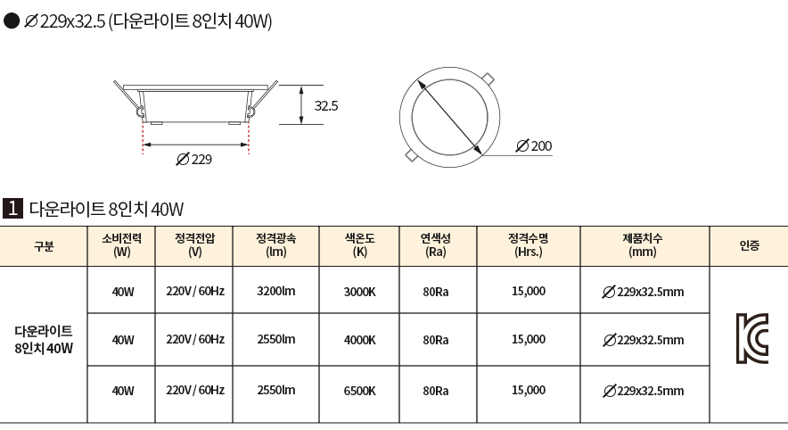 다운라이트 8인치 40W
